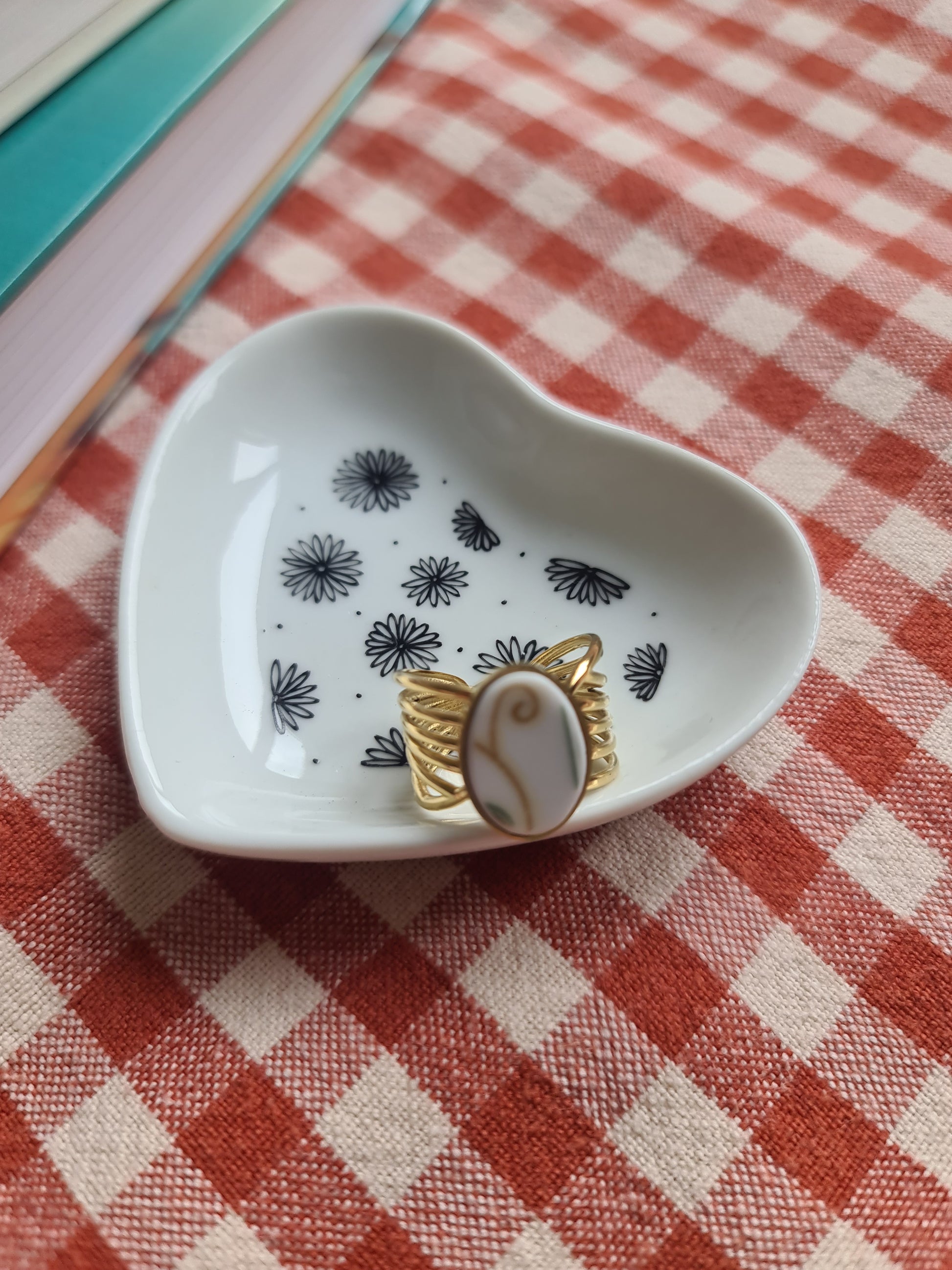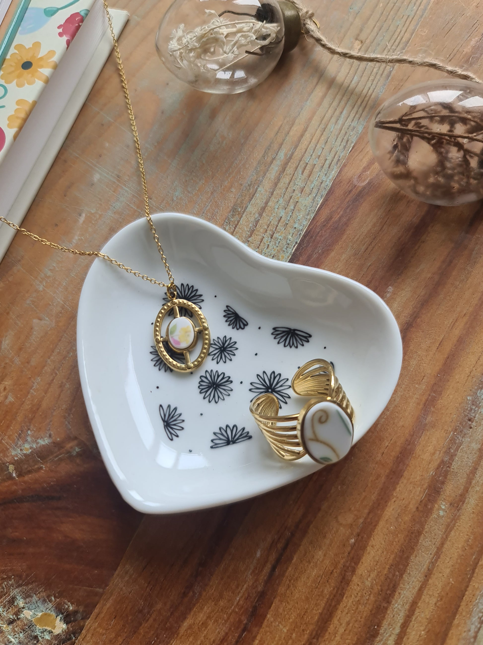 Cette jolie coupelle en forme de cœur, sera parfaite pour y déposer ses bijoux ou même en petit repose sachet de thé.