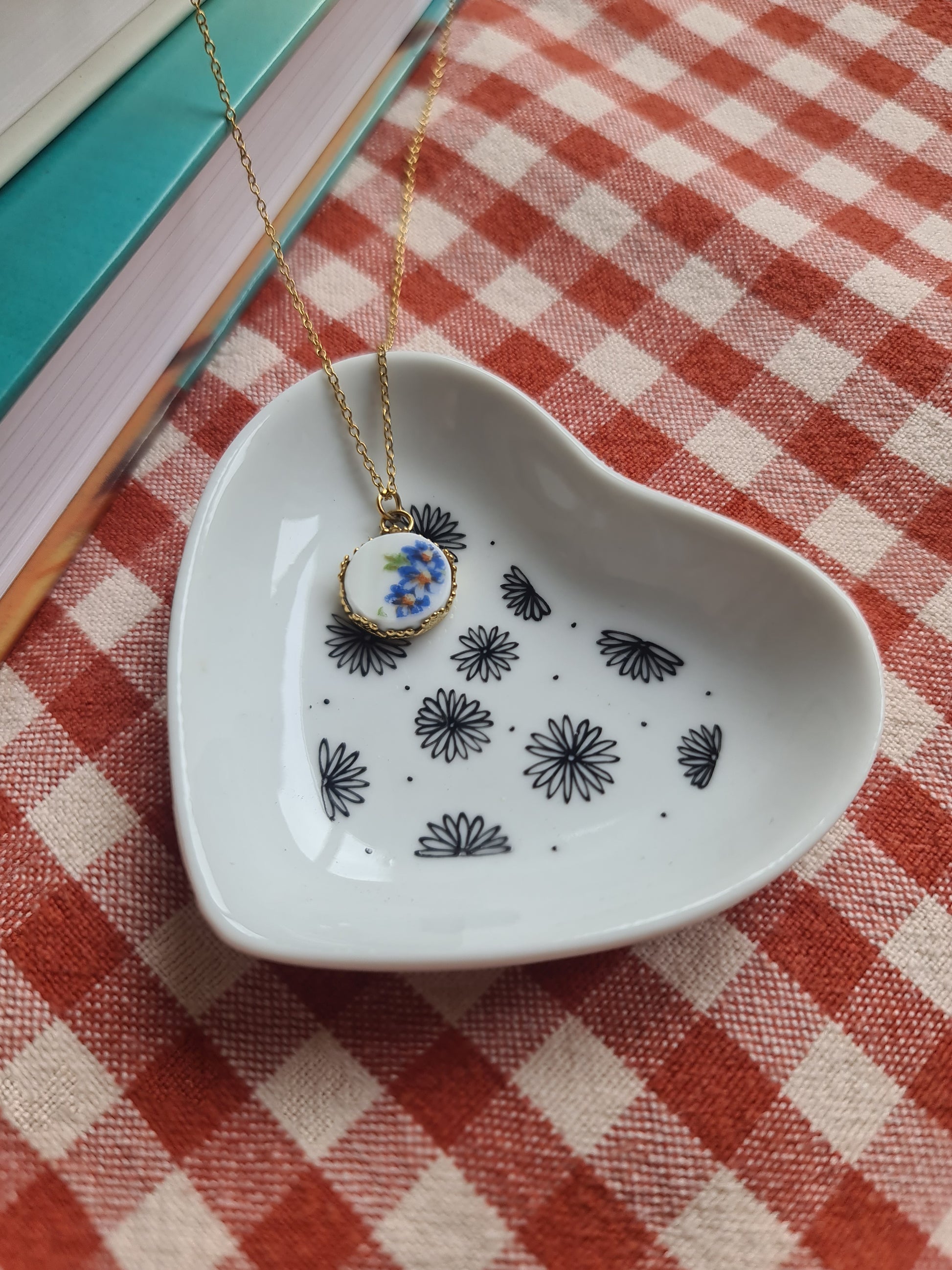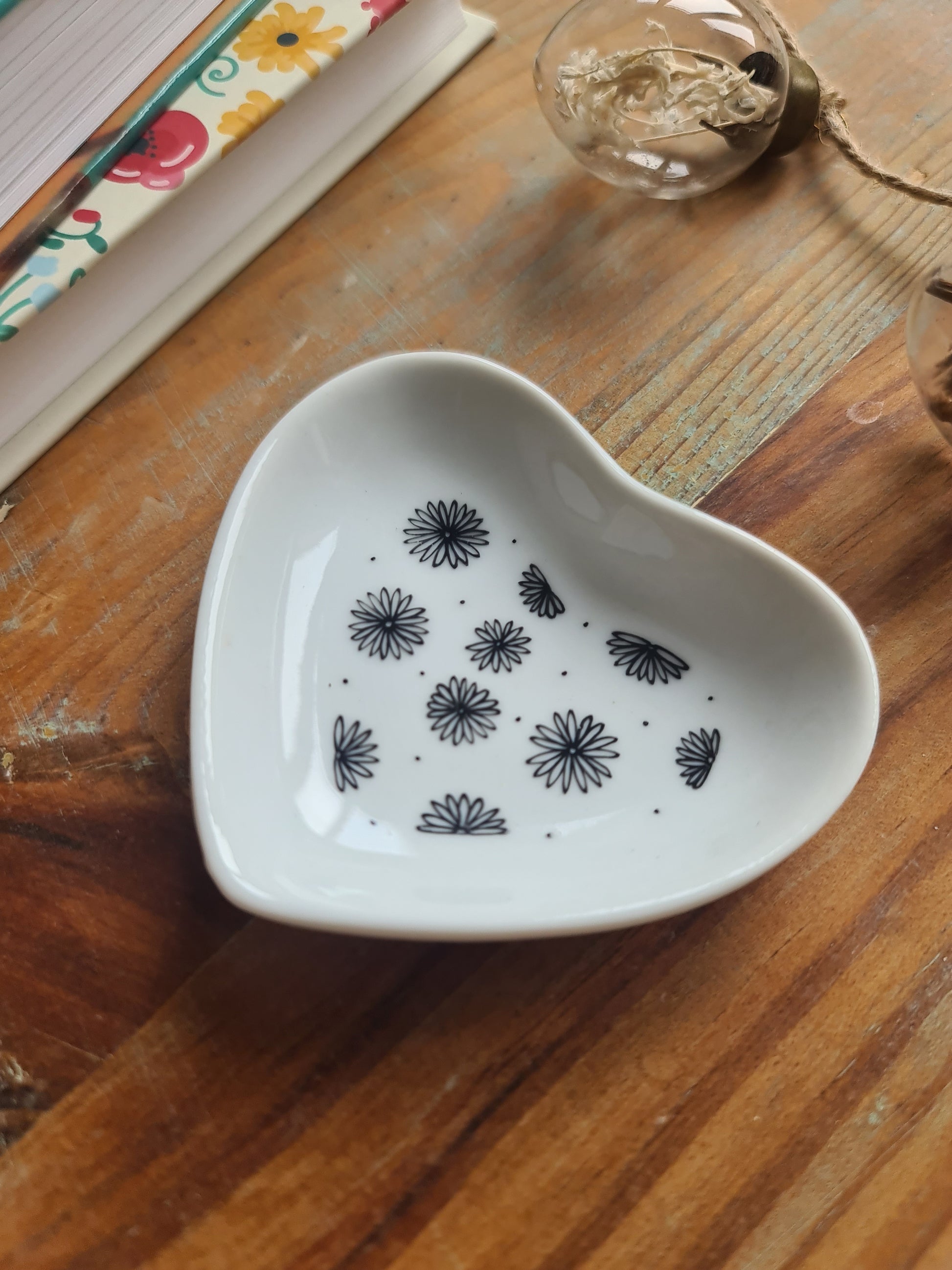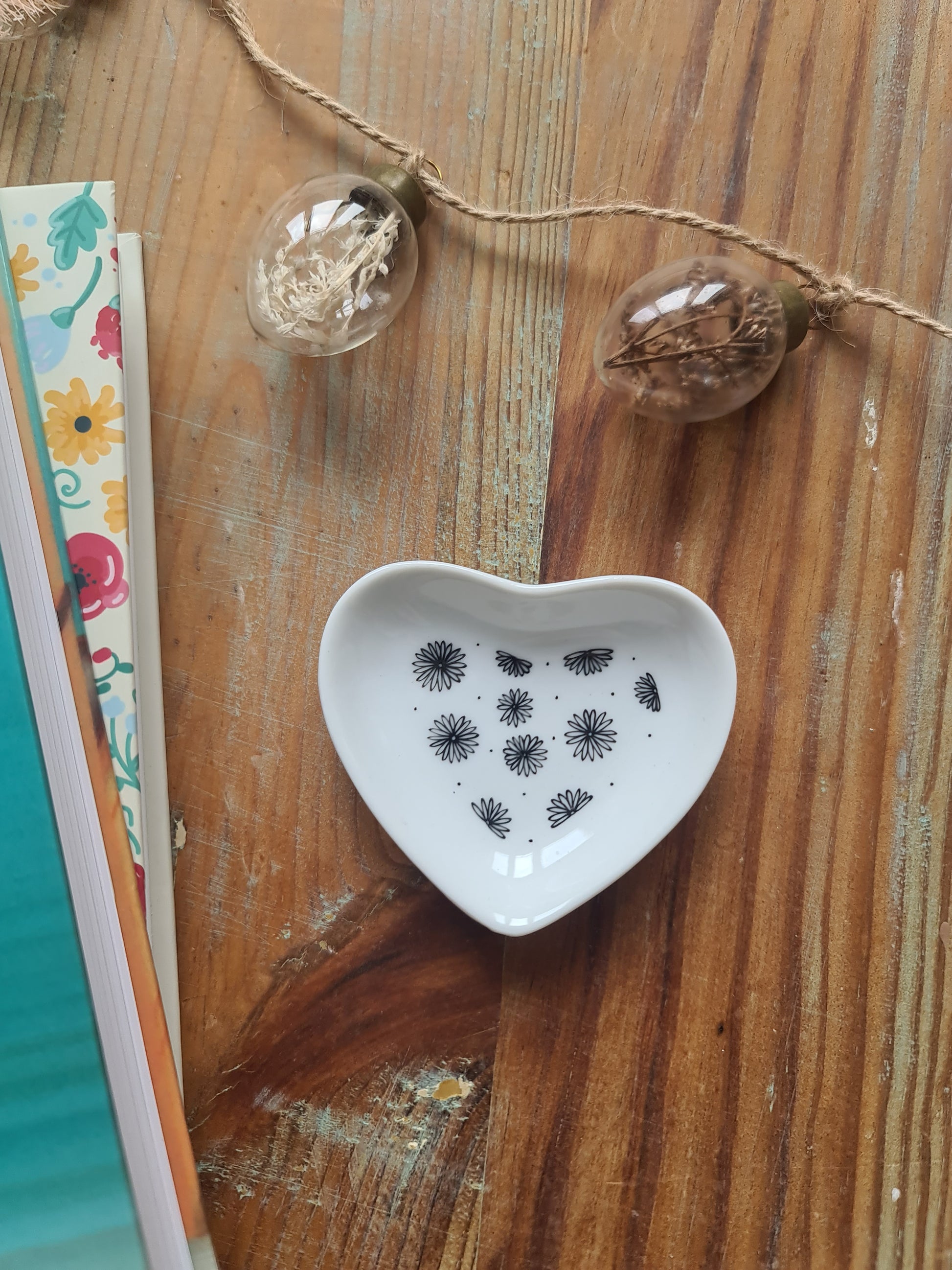 Coupelle cœur en porcelaine - décor Grandes marguerites peint à la main