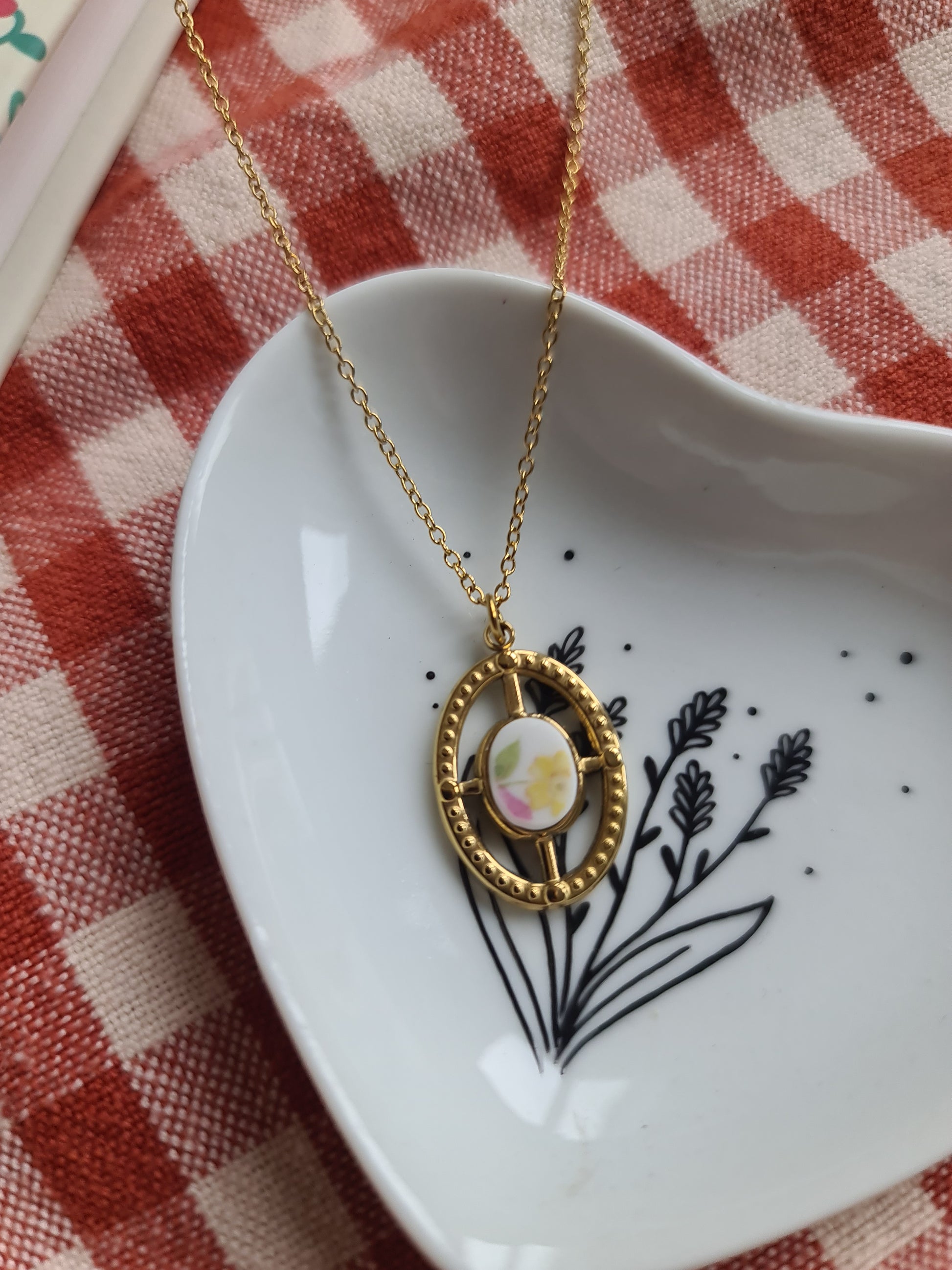 Coupelle cœur en porcelaine - décor Fleurs épi peint à la main