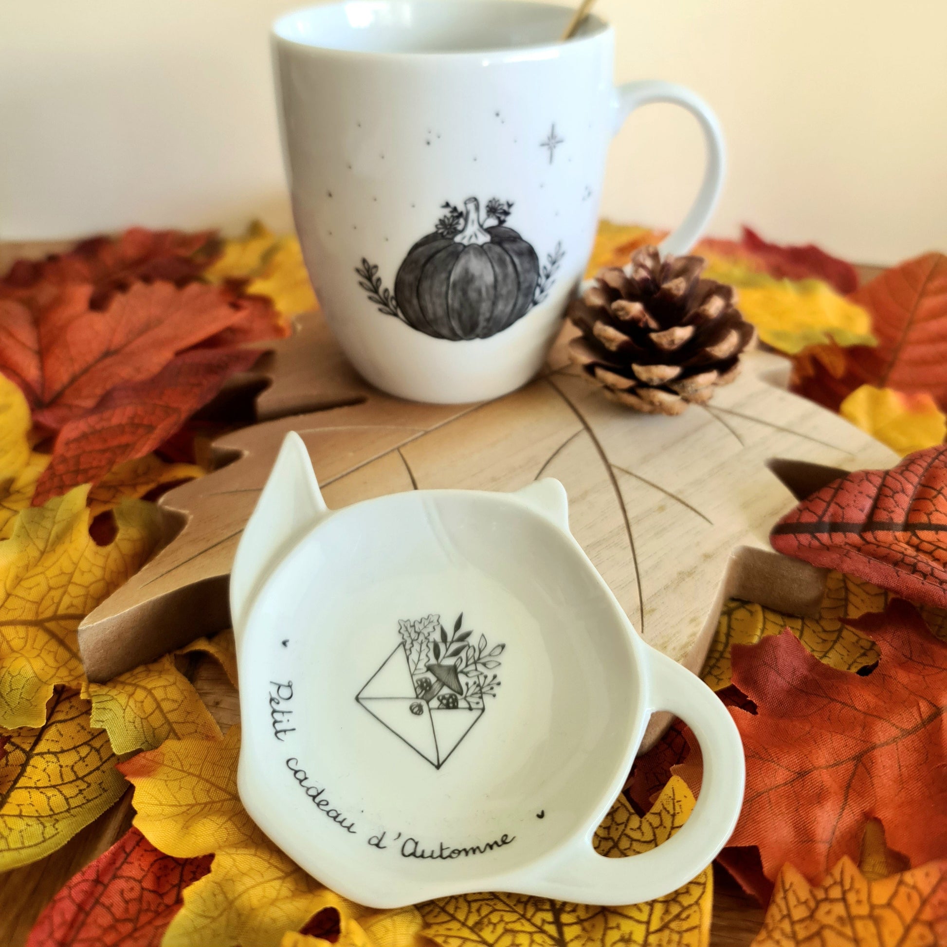 Ce joli repose sachet de thé en porcelaine sera parfait pour poser votre sachet de thé lors de vos moments de détente avec votre thé. Son décor Enveloppe "Petit cadeau d'Automne" donne une délicate touche automnale.